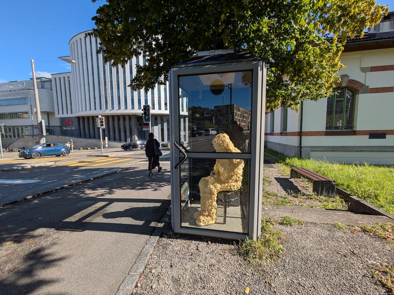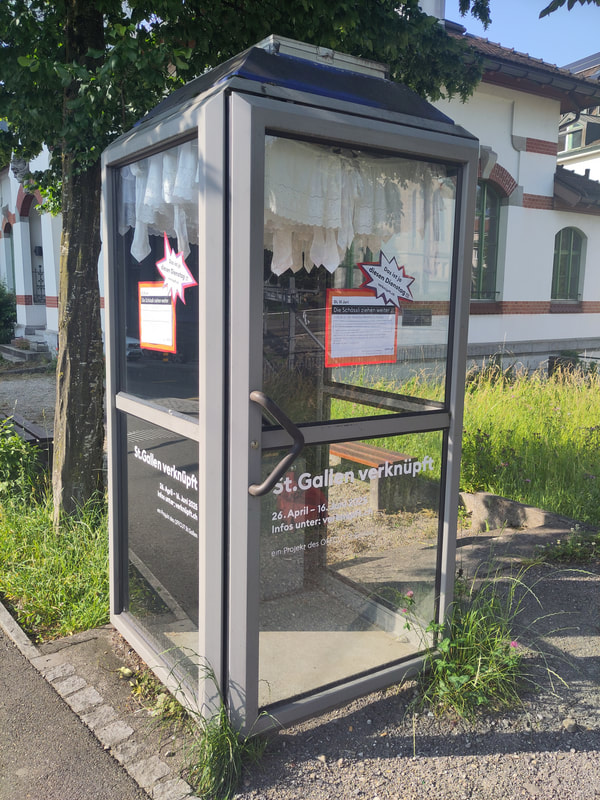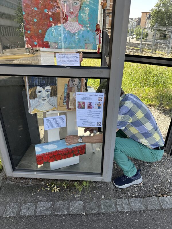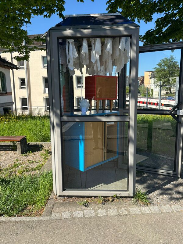 Wir sind drei Schülerinnen der GBS St. Gallen und absolvieren gerade die Berufsmaturität. Im Rahmen einer interdisziplinären Projektarbeit, haben wir uns zur Aufgabe genommen, der Menstruation eine Bühne im öffentlichen Raum zu geben. Das Bedeutet: Unser Projekt setzt sich aus drei verschiedenen Aktionen zusammen. Die erste, bereits umgesetzte Aktion beinhaltet die (bislang noch temporäre) kostenlose Bereitstellung von Menstruationsprodukten an verschiedenen GBS Schulhäusern. Die zweite Aktion ist, wie du bereits entdeckt hast die kleine Installation in der Telefonkabine. Diese ist seit Anfang Januar 2026 installiert und wird bis Ende Januar bestehen bleiben. Wir nutzen sie um auf die dritte und letzte Aktion hinzuweisen. Geplant ist eine grössere Rauminstallation zum Thema Menstruation. Sie soll Menschen eine neue künstlerische Perspektive zur monatlichen Blutung geben und durch diese Sichtbarkeit sollen patriarchale Strukturen abgelöst werden. Diese findet vom 19.-21. Februar 2026 im Flon an der Davidstrasse 42 statt. Die Figuren entstanden an der Museumsnacht 2025 im open art museum OAM